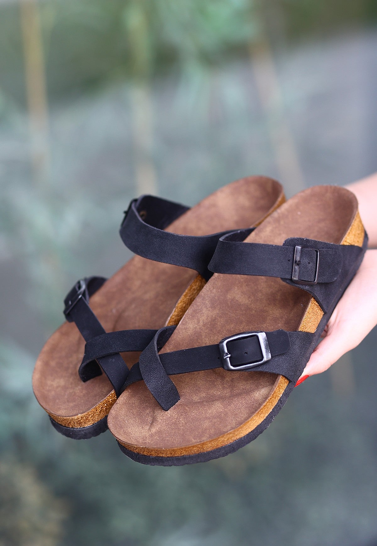 Kadın Siyah Nubuk Parmak Arası Terlik - Opil