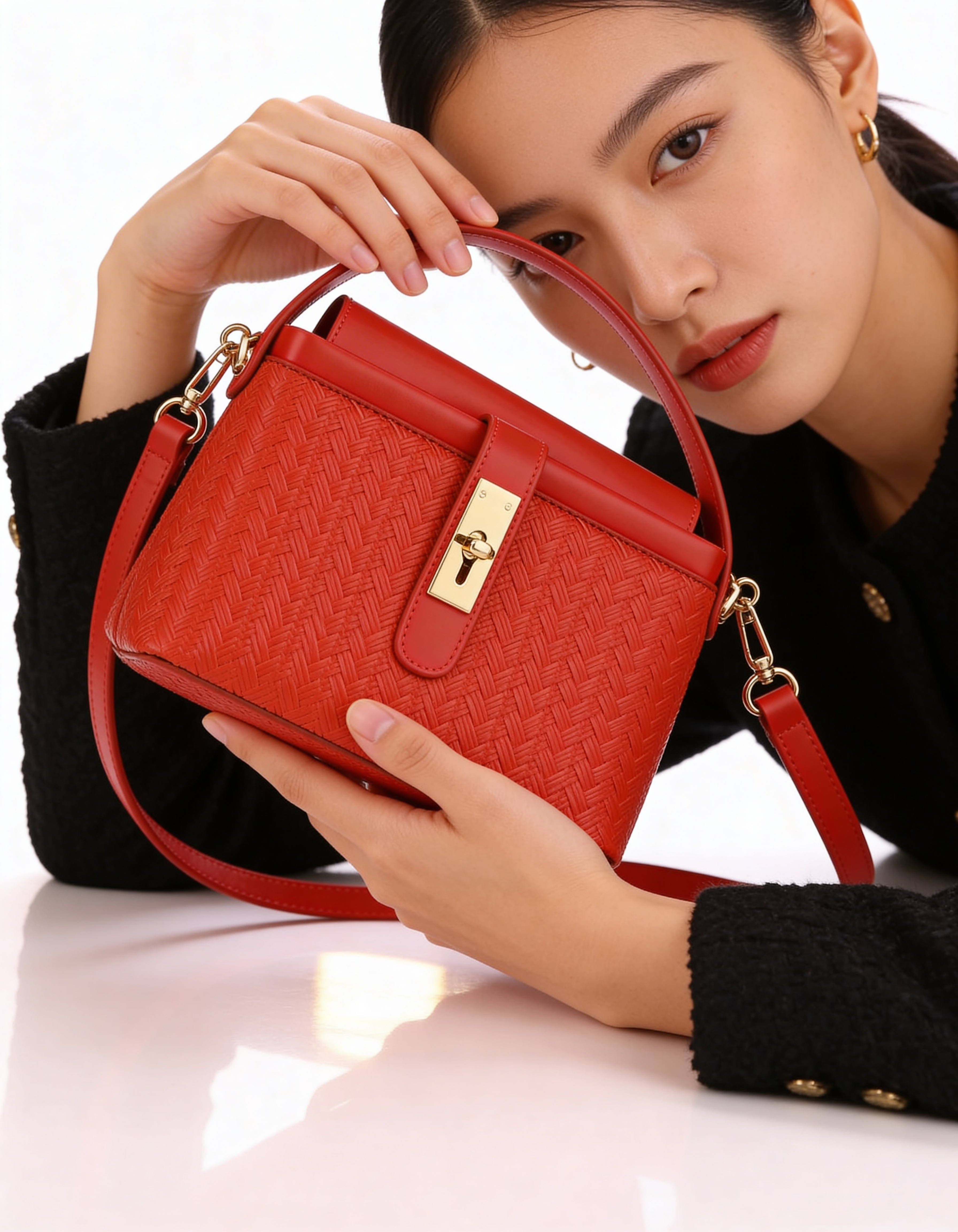 Aksesuarlar altın rengidir.