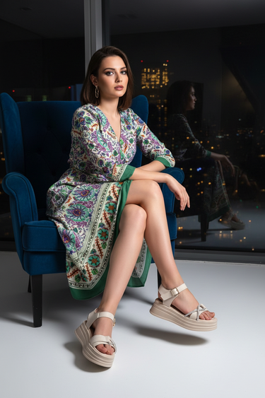 Kadın Bej Kemerli Yüksek Taban Sandalet - Luno