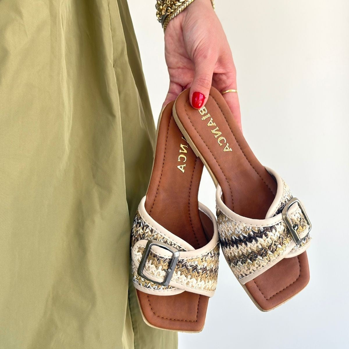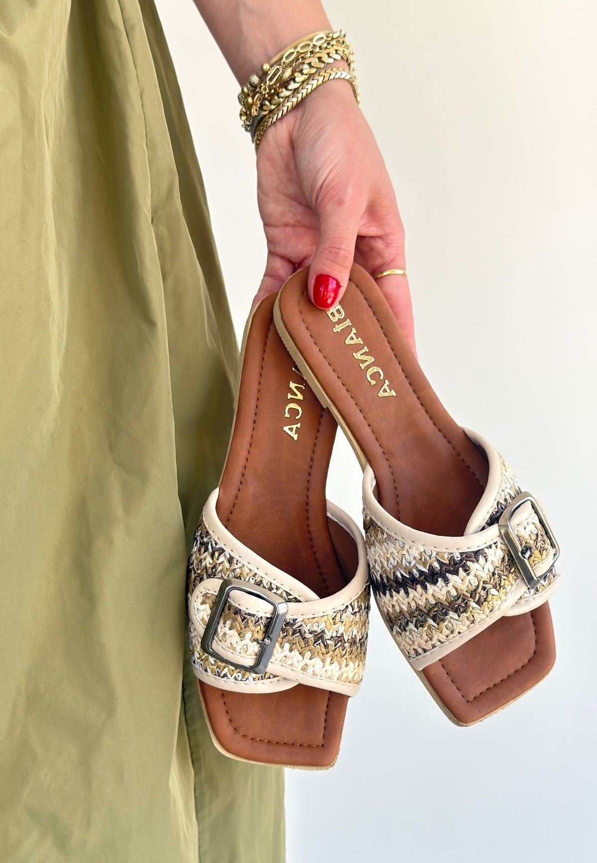 Kadın Bej Hasır Örgü Detaylı Terlik - Revin