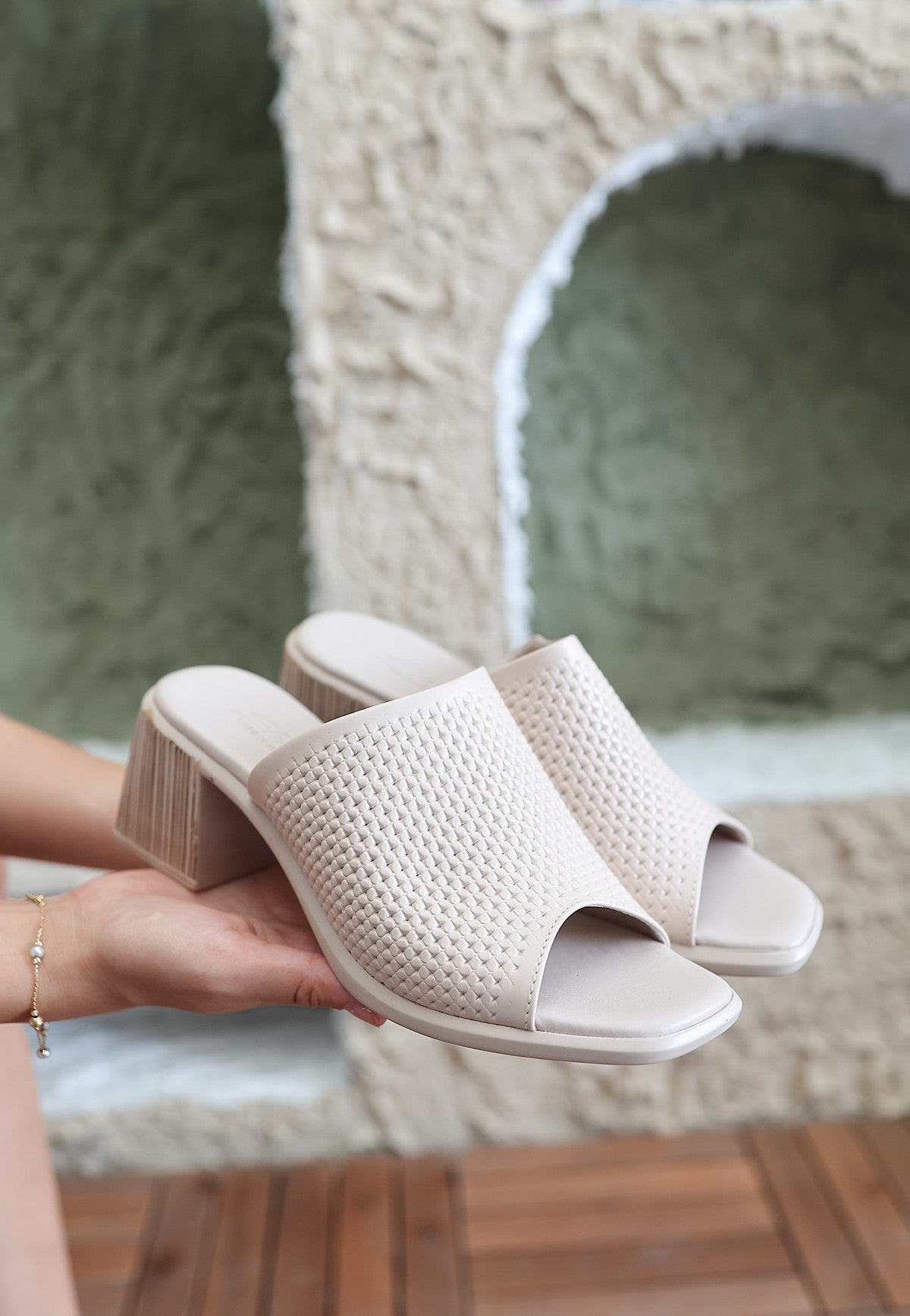 Kadın Bej Kalın Topuklu Terlik - Zanna