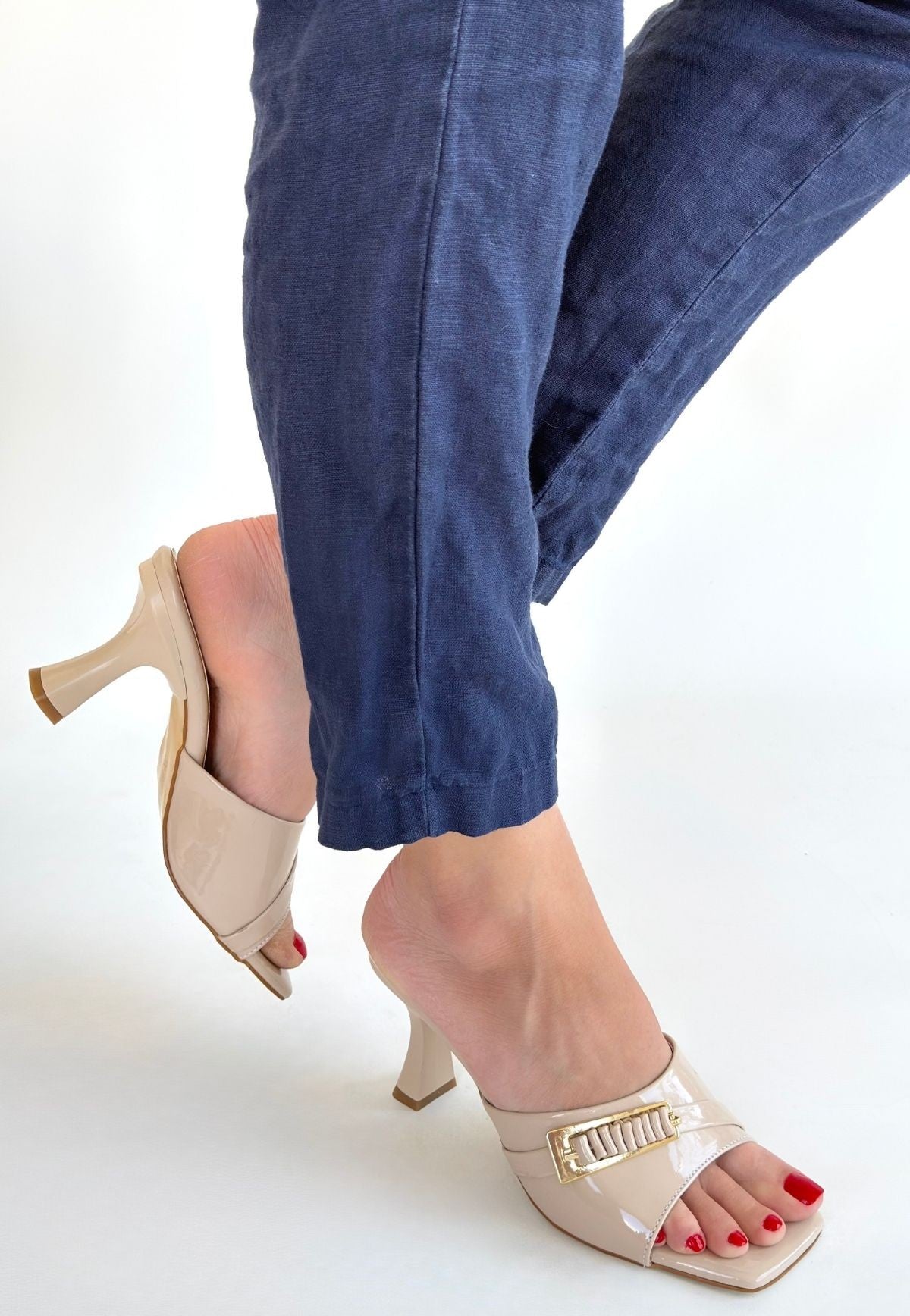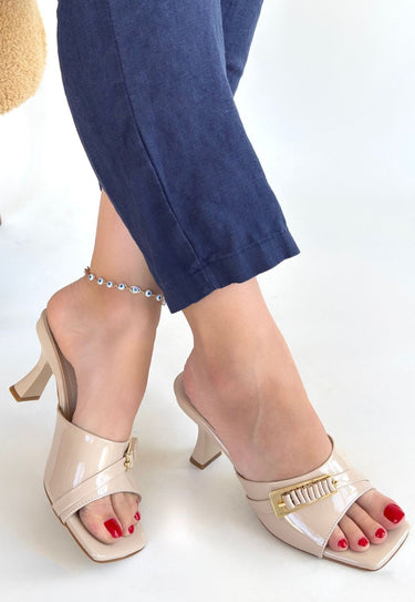 Kadın Bej Rugan Tek Bantlı İnce Topuklu Terlik - Sief