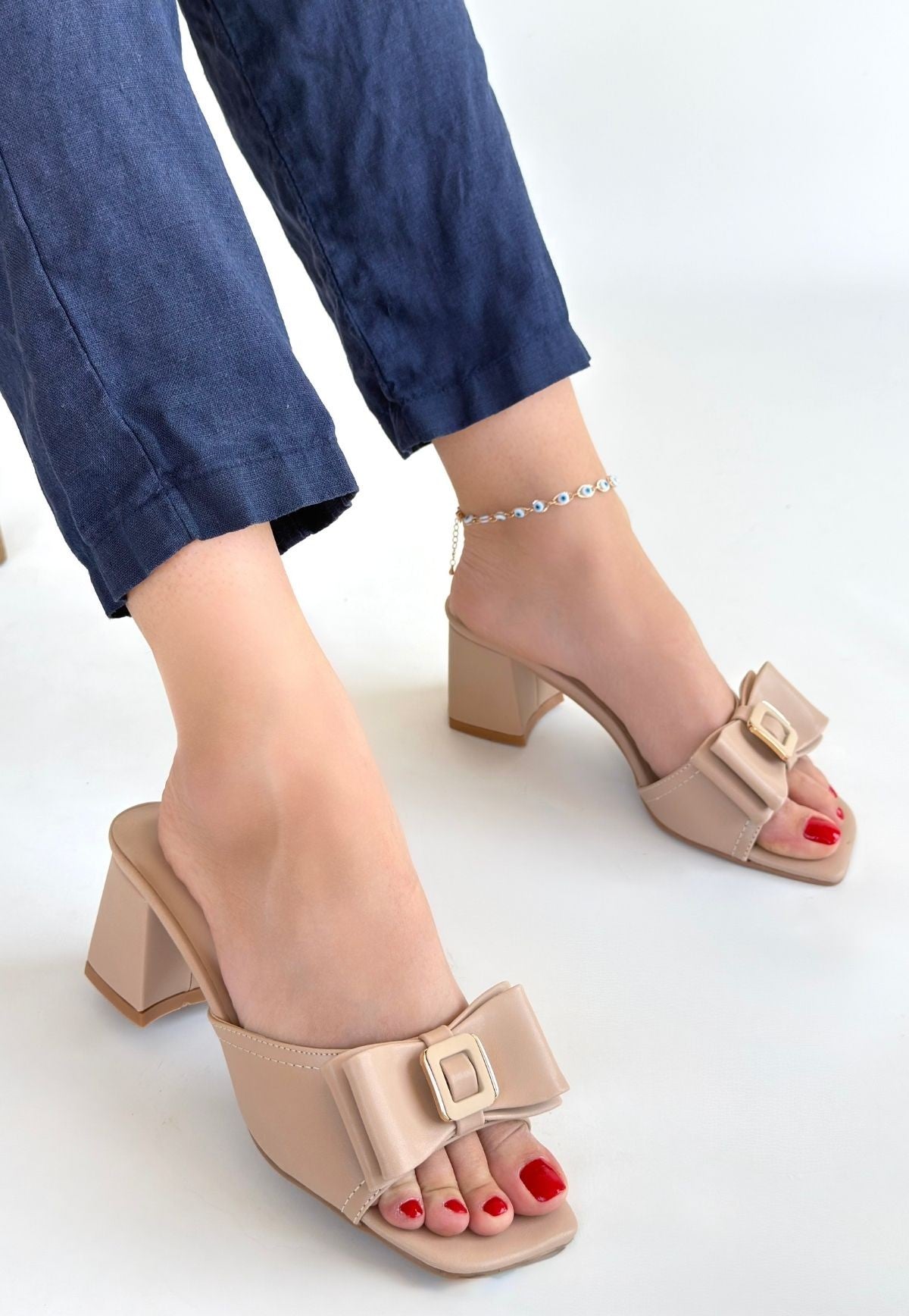Kadın Nude Kurdele Detaylı Topuklu Terlik - Pier