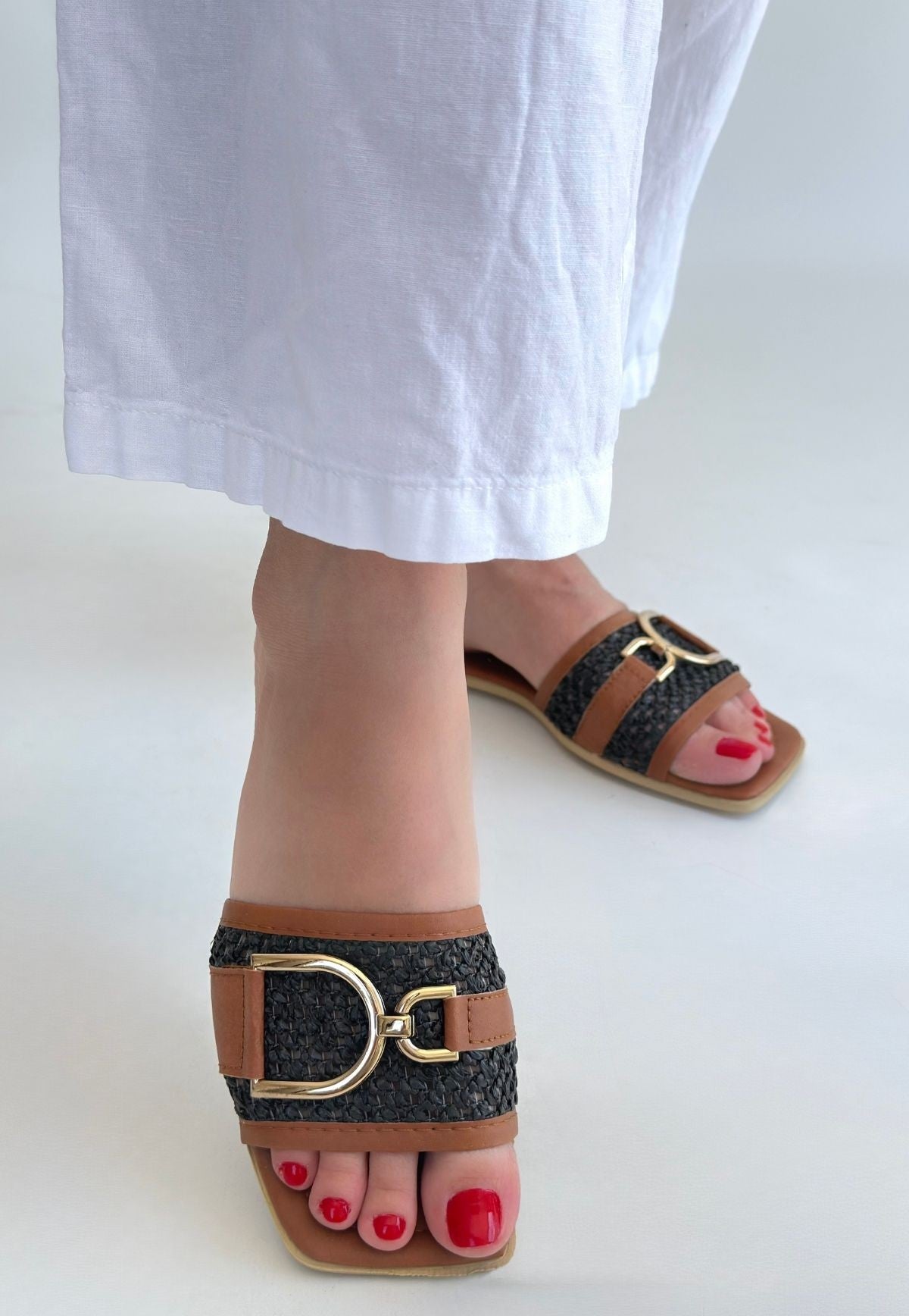 Kadın Siyah Örgü Desenli Tokalı Terlik - Pıer