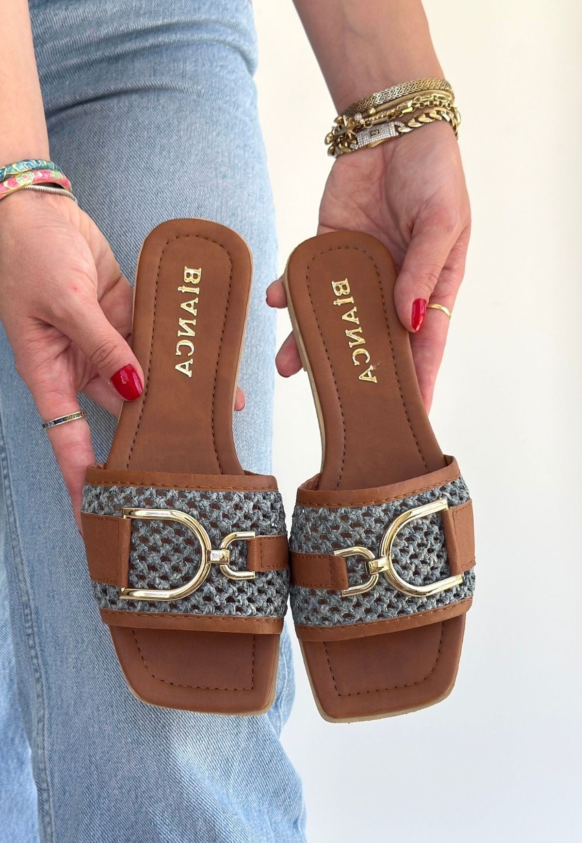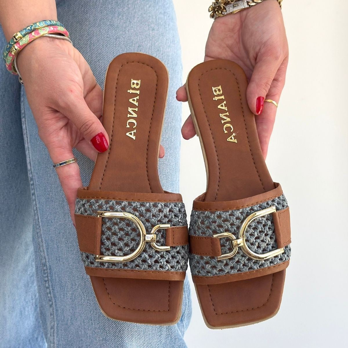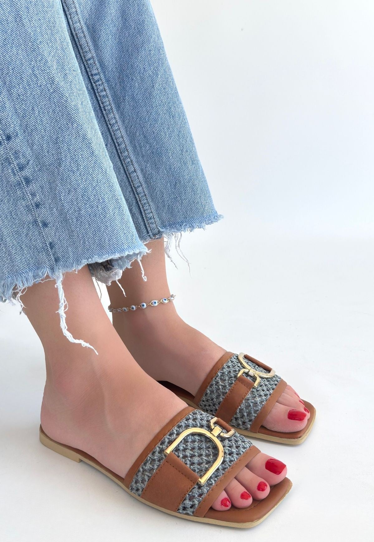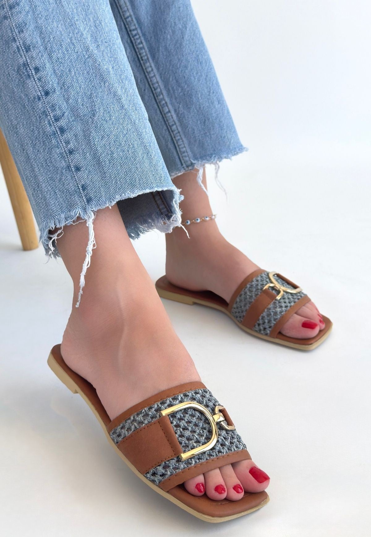 Kadın Taba Örgü Desenli Tokalı Terlik - Pıer