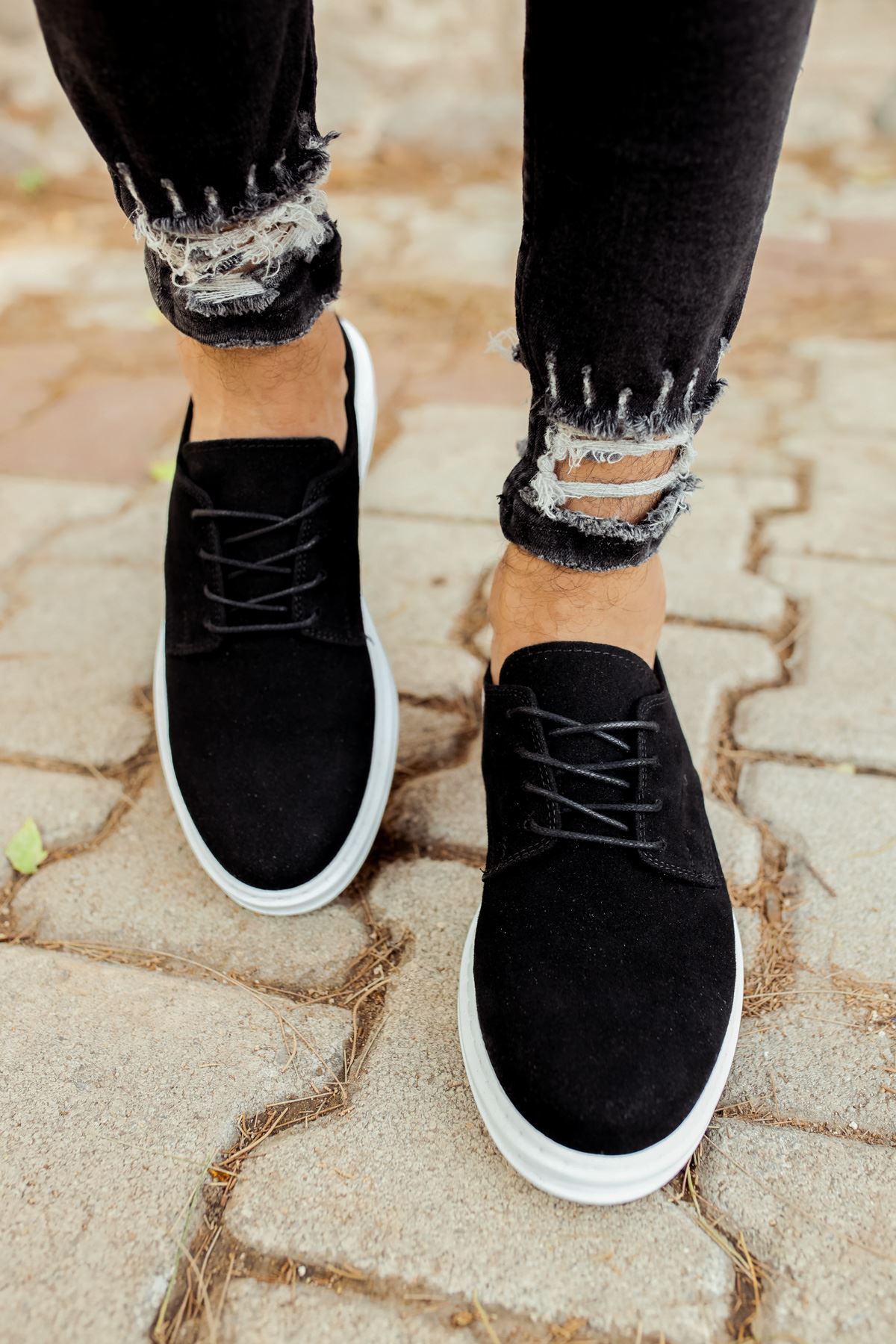 Erkek Siyah Süet Bağcıklı Klasik Günlük Ayakkabı - 003 - SBT Comoscio Classico