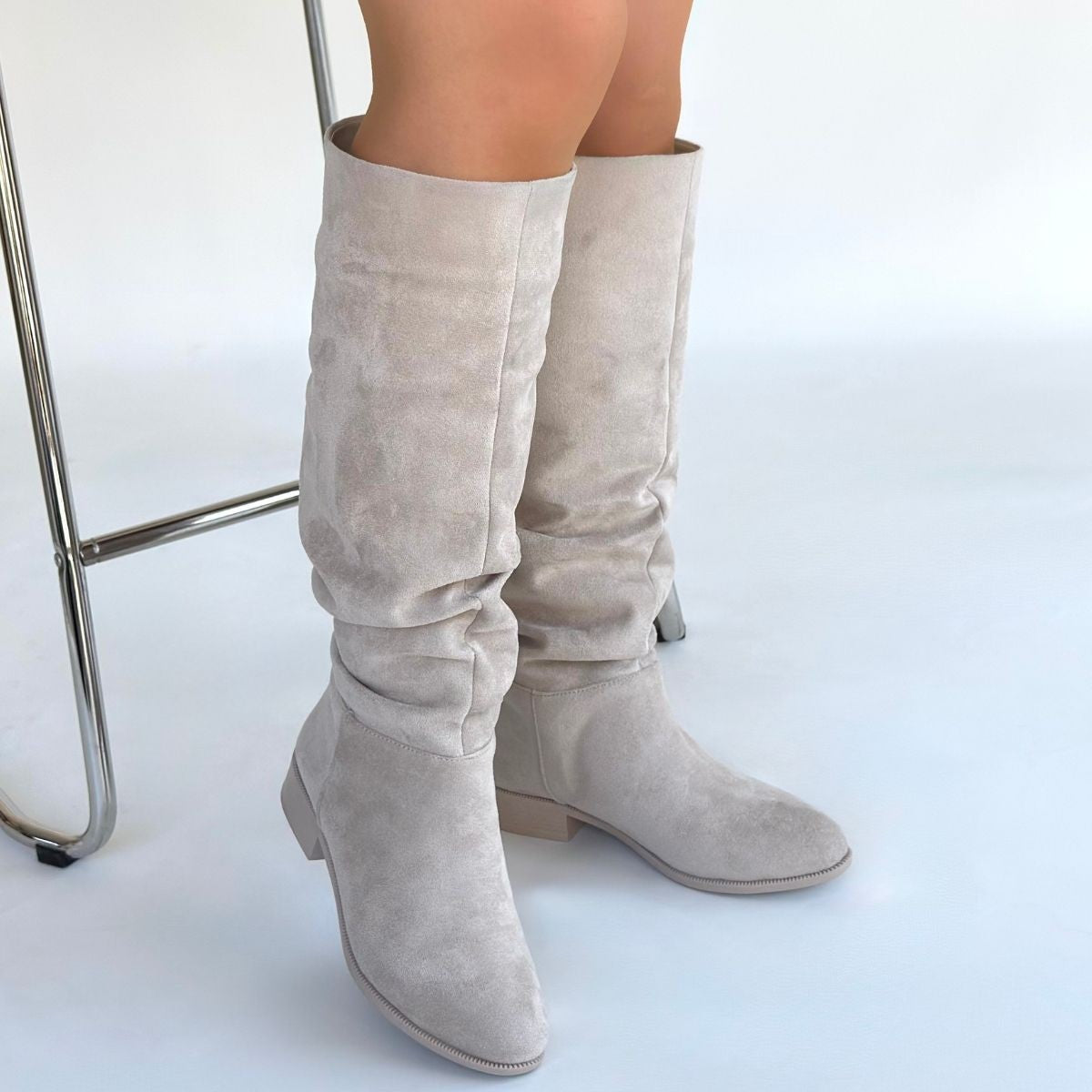 Kadın Bej Süet Körüklü Sivri Burun Kısa Topuklu Çizme - Winda