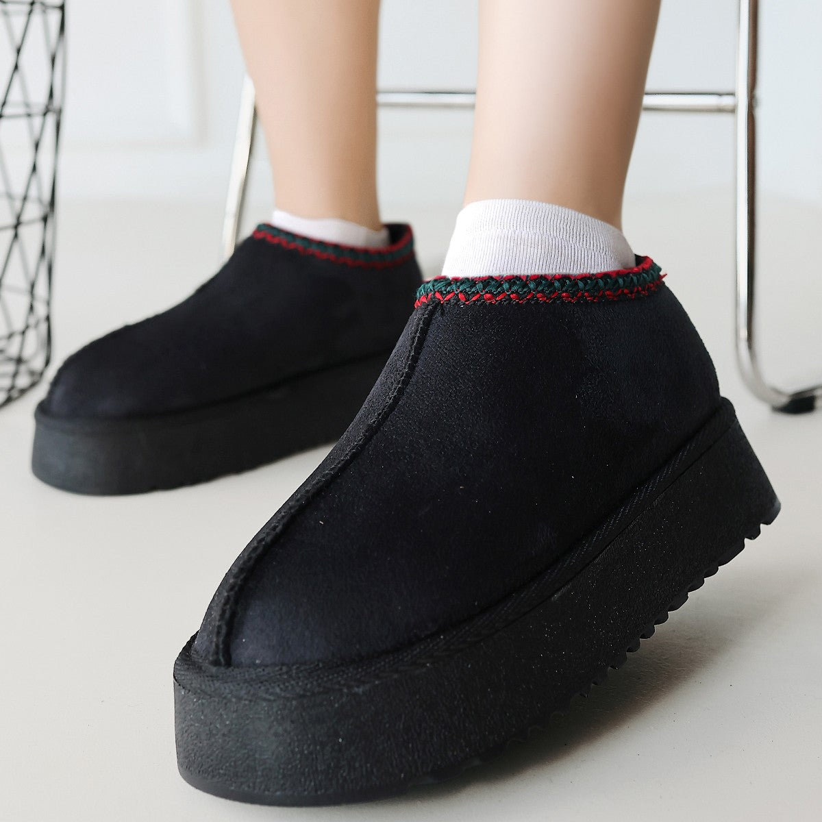 Kadın Siyah Süet İçi Kürklü Kalın Tabanlı Bot - Foyk