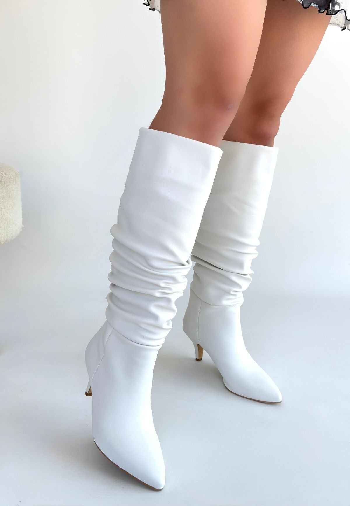 Renk : BeyazDetay : Topuklu Diz Altı Körüklü Çizme