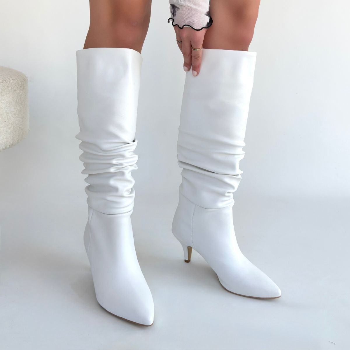 Kadın Beyaz Körüklü Kısa İnce Topuklu Çizme - Zelya