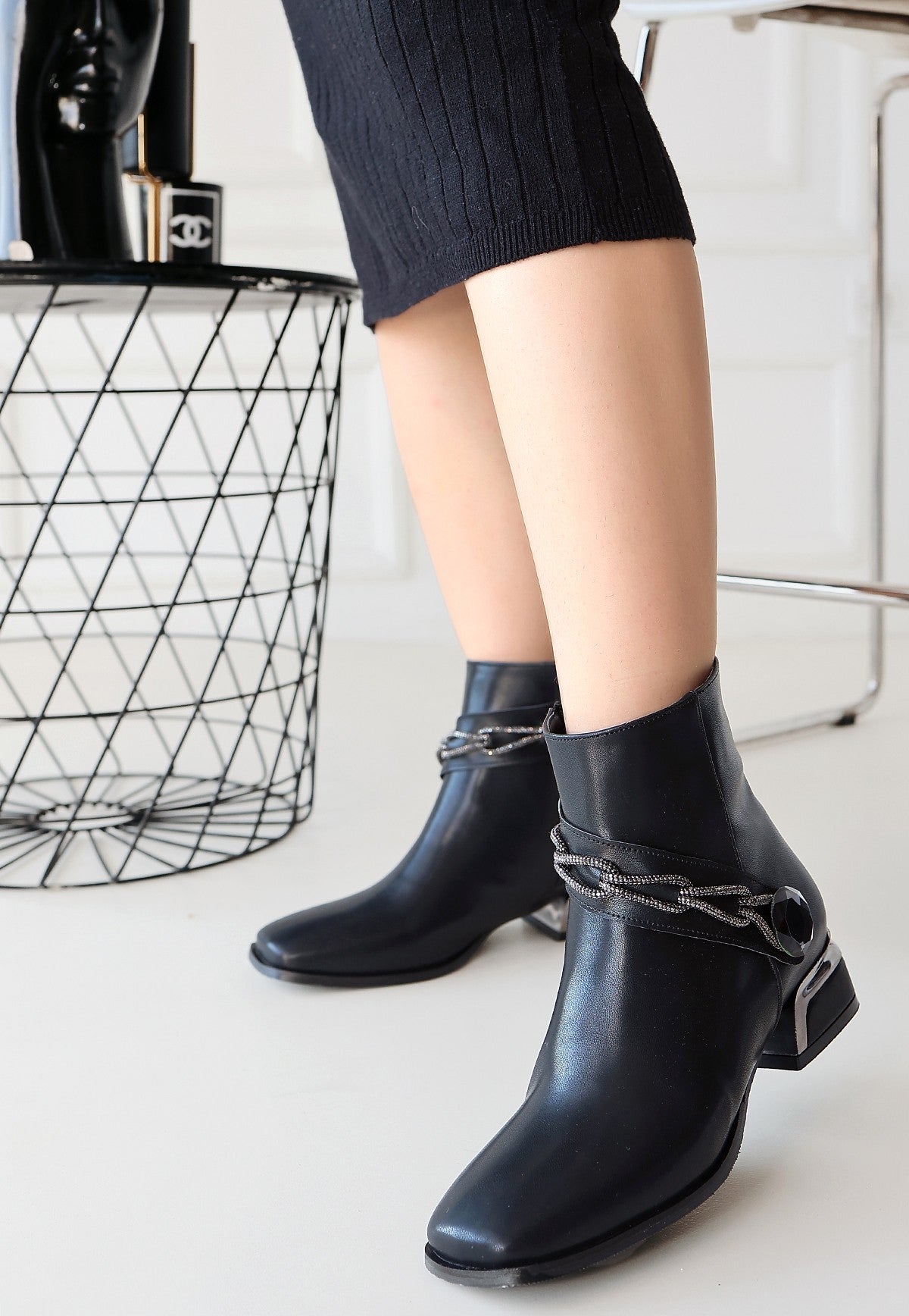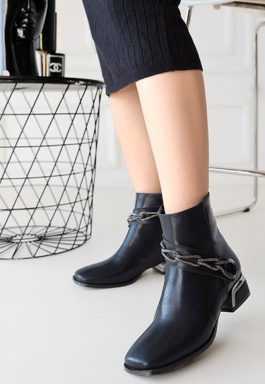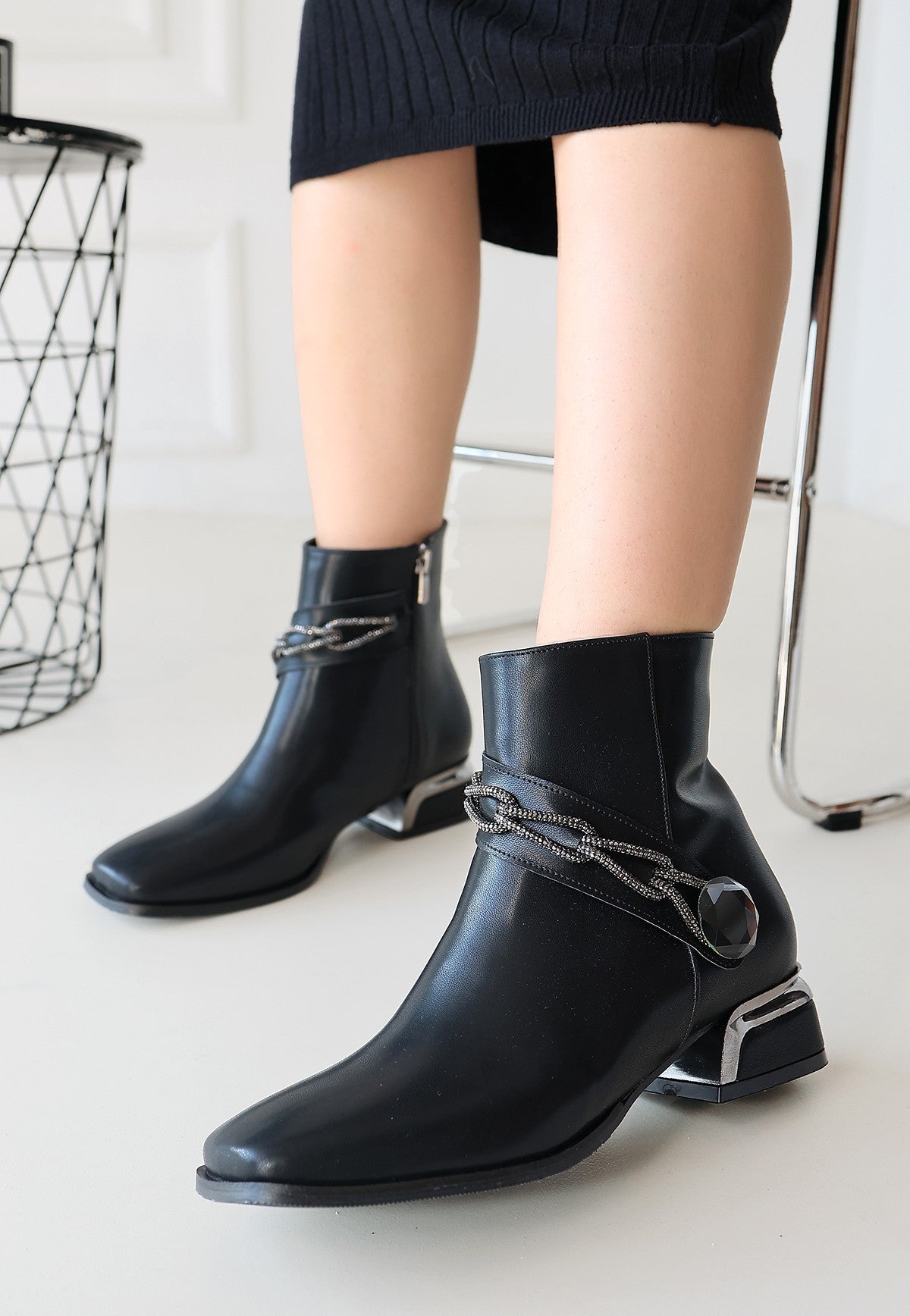 Kadın Siyah Taş Süslemeli Kısa Topuklu Bot - Roxani